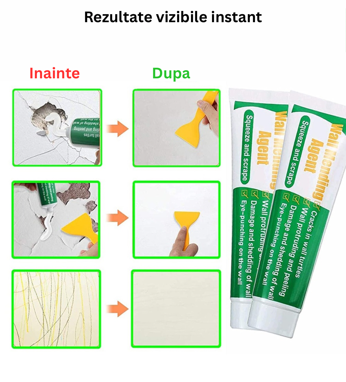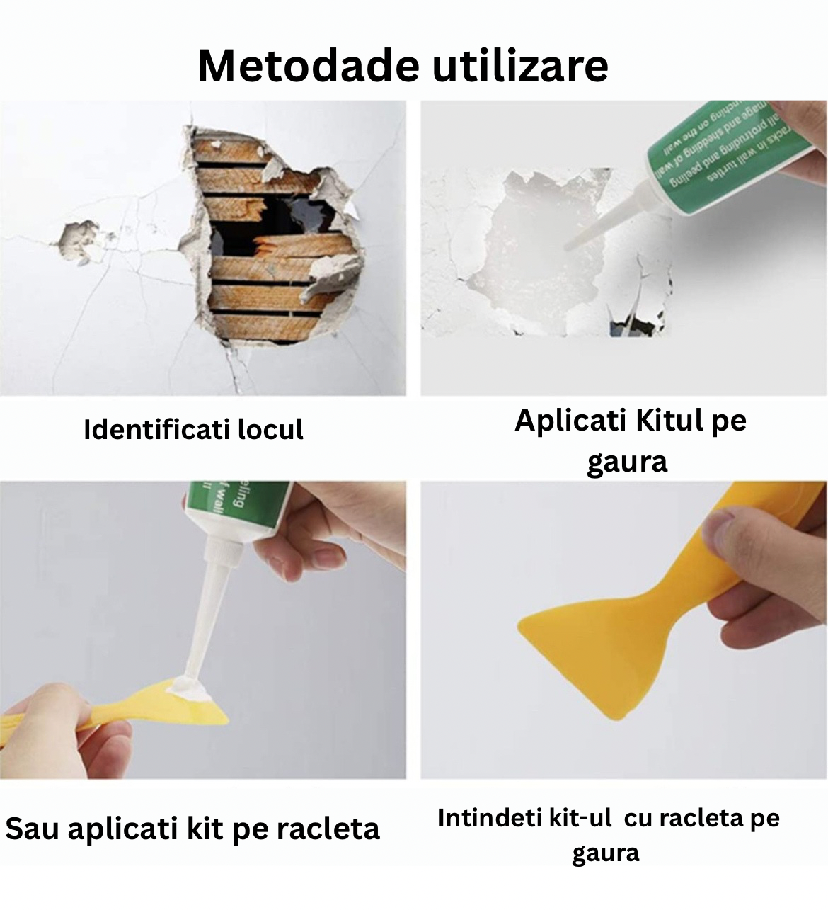 Cu Kitul de Reparat Pereți, îți transformi locuința în doar câteva minute. Aplici KIT alb direct din tub și îl nivelezi simplu cu racleta inclusă – fără efort, fără mizerie. Rezultatul? Pereți netezi, curați și un aspect ca nou, gata să-ți redea frumusețea casei.